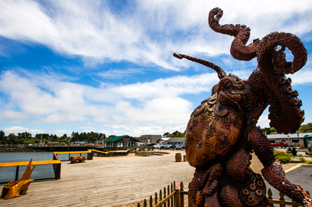 Still hungry? Walk down toward the waterfront, where you’ll find Shark Bites Cafe as well as other casual eateries, nearby the giant murals celebrating track legend and Coos Bay native Steve Prefontaine. (The city’s annual Prefontaine Run is set for Sept. 15, 2018.) Shark Bites is known for their fish tacos, but the crab cakes and fried oysters are also sublime with a craft beer on tap.
