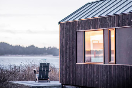 One of the newest lodgings on the Coast, Bay Point Landing is anything but rustic. The striking modern design of this upscale cabin and RV resort offers 103 acres of kid- and dog-friendly space for cabins and Airstream trailers on the shores of Coos Bay. Pamper yourself with a pool house, fitness center and a general store on site with curated food, beer and wine. On the North Coast, Sheltered Nook in Bay City is a pet- and family-friendly spot on Tillamook Bay with six individual tiny homes, each 385 square feet and fully stocked with locally-made furniture, TVs, food in the cupboards, a 9-hole disc golf course and a variety of lawn games and other activities on site.
