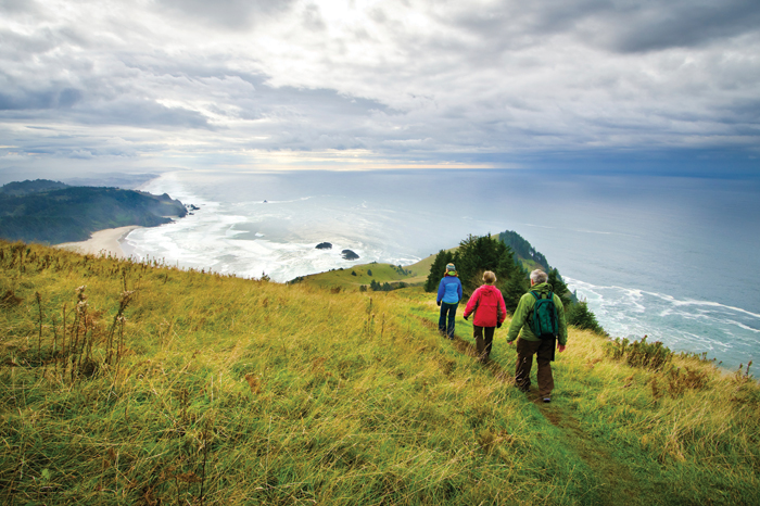 Climbing 600 feet above the coastline near Yachats, the 1.5-mile (2.4-kilometer) St. Perpetua Trail at Cape Perpetua offers a panoramic view of the Central Coast.